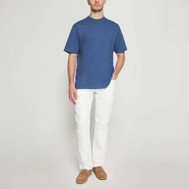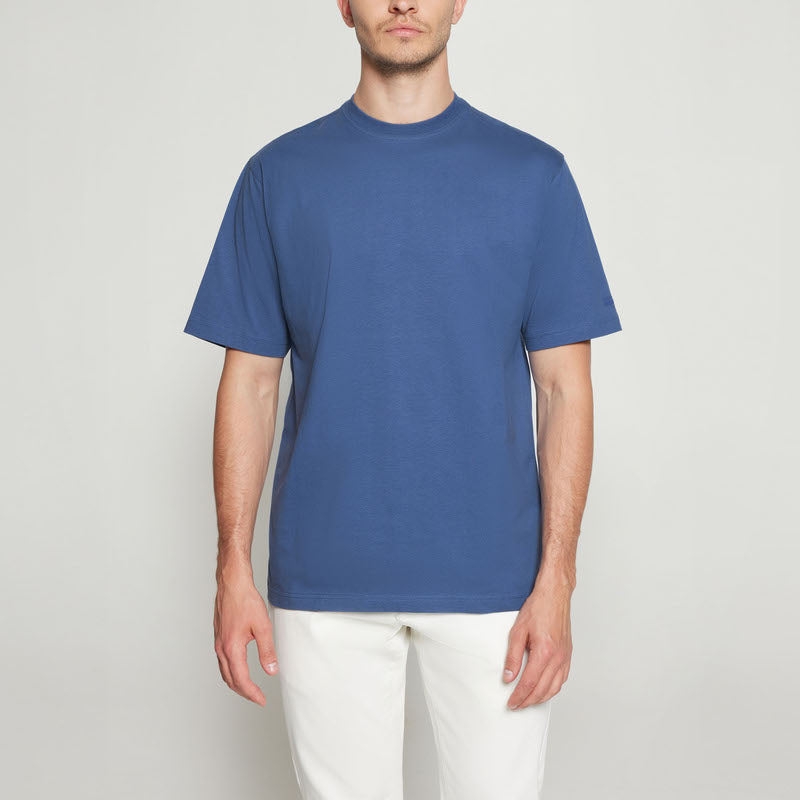 True blue EddySi + T-shirt/top crafted for everyday comfort and easy styling. Made from a premium blend of 100% cotton and 80/20 melange for a soft, breathable feel. Designed to hold its color and fit through regular wear and washing.